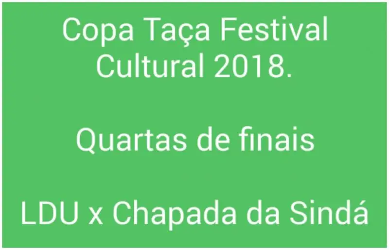 No próximo sábado (23), será realizada a quarta e última partida válida pelas quartas de finais da Copa Taça Festival Cultural 2018. O jogo terá início a partir das 16 horas, no Estádio Municipal de São João do Arraial, e será disputado entre as equipes do LDU e Chapada da Sindá, partida que era para ter sido realizada no último dia 09, e foi adiada para o dia 23.