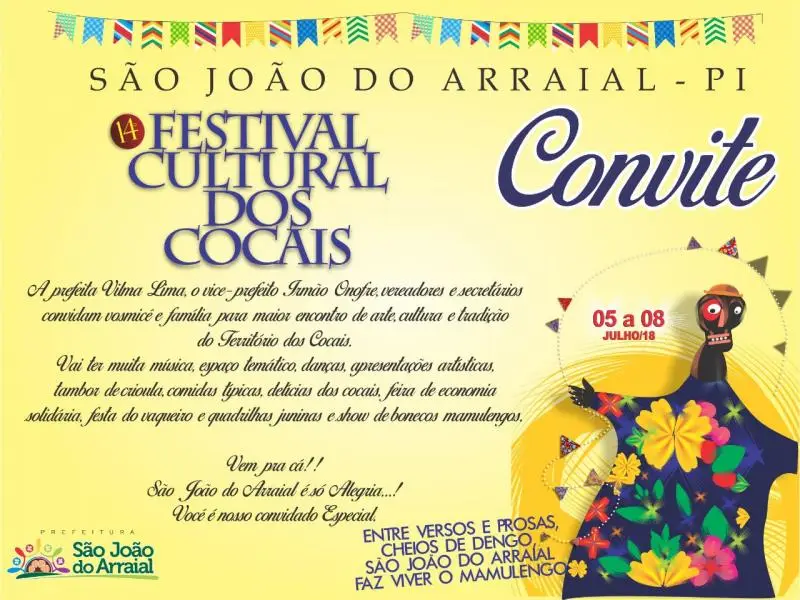 A Prefeita Vilma Lima, o vice-prefeito Irmão Onofre, vereadores e secretários, convidam vosmicê e família, para o maior encontro de arte, Cultura e tradição do Território dos Cocais.