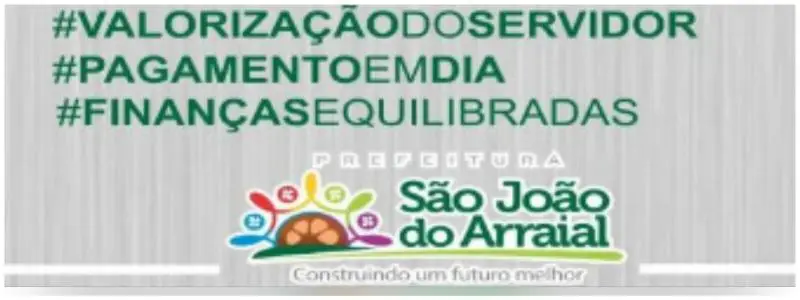 Vale parabenizar a atual gestão, pois enquanto que nestes tempos de crise, alguns Municípios não conseguem nem manter a folha de pagamento em dias, o Município de São João do Arraial, sob a administração da Prefeita Vilma Lima (PT), nunca atrasou o pagamento dos servidores e ainda vem pagando adiantado.