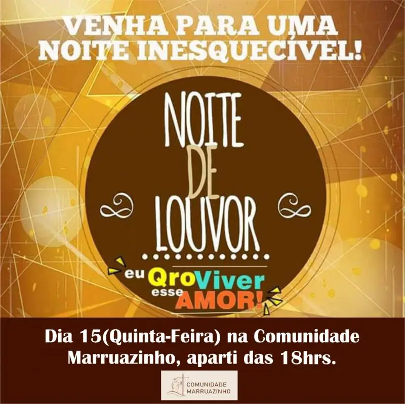 Você é convidado(a) especial a participar de mais esse grande momento de louvor e amor a Deus. Agradece, o grupo de jovens e as famílias da comunidade Marruazinho.