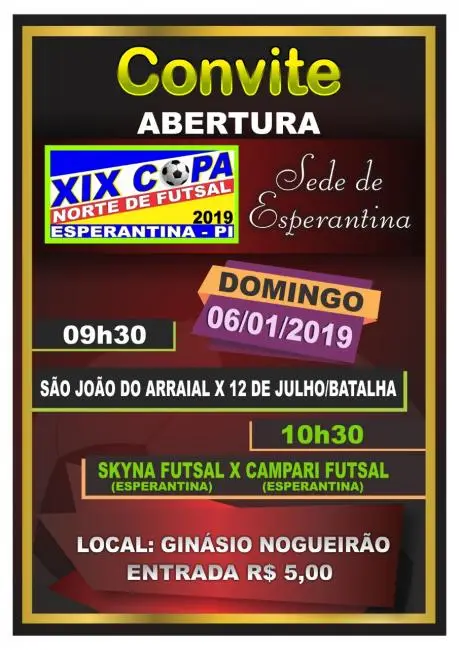 O time de São João do Arraial se prepara para disputar mais uma edição da Copa Norte de futsal, a equipe estréia no dia 06 de janeiro, a partir das 9h30, no ginásio Nogueirão, em Esperantina.