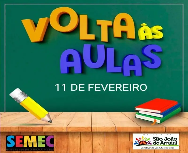 A Secretaria Municipal de Educação e Cultura (SEMEC) de São João do Arraial comunica a todos os alunos e aos pais ou responsáveis por alunos, que estará dando início as aulas do ano letivo de 2019, na próxima segunda-feira, 11 de Fevereiro, em todas as escolas da rede municipal de ensino.