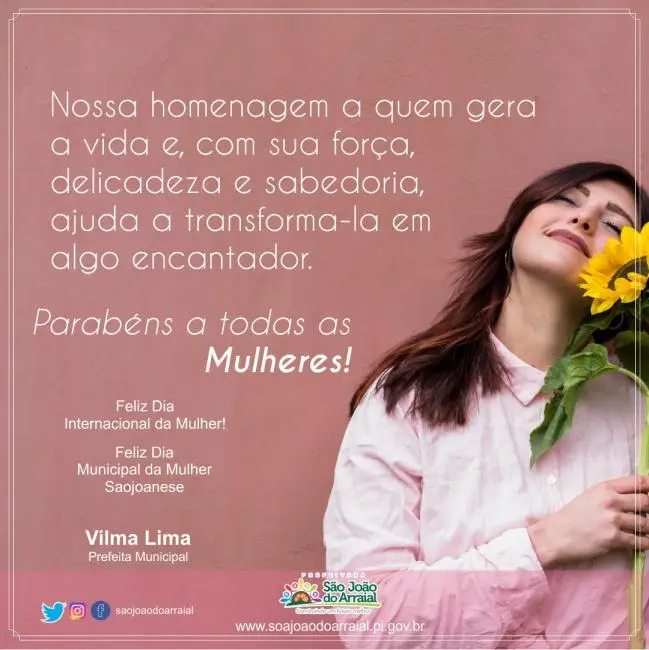 Parabéns pelo dia Municipal da mulher São Joanense do Arraial!