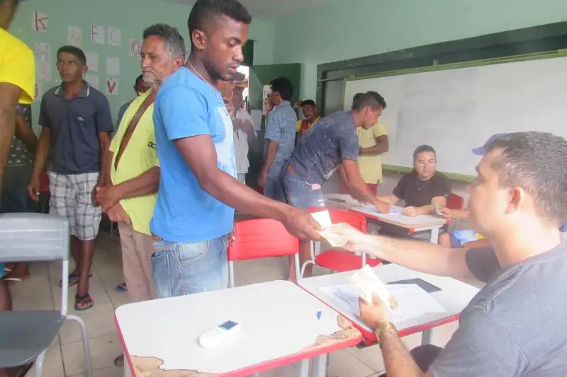 As pessoas que trabalharam nas estradas na zona rural receberam o pagamento na região onde trabalhou, e os que trabalharam na limpeza das ruas receberam o pagamento na sede.
