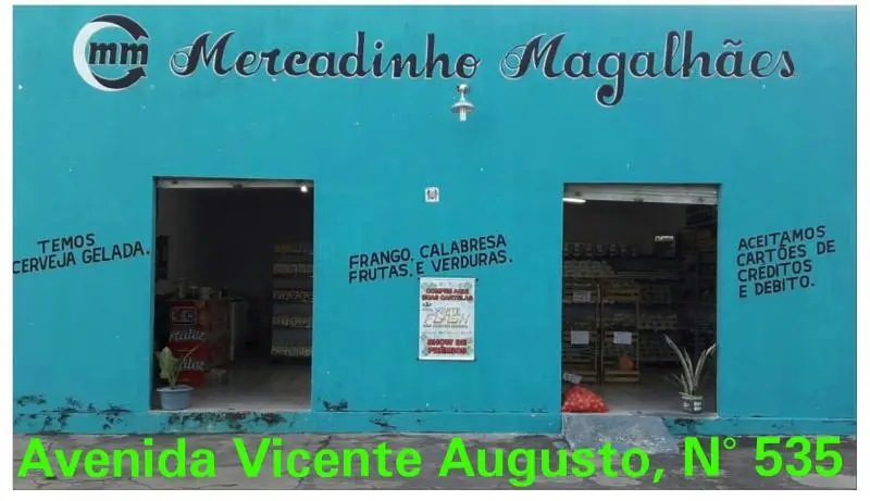 O Mercadinho Magalhães está localizado na Avenida Vicente Augusto, número 535, em frente a Prefeitura Municipal.