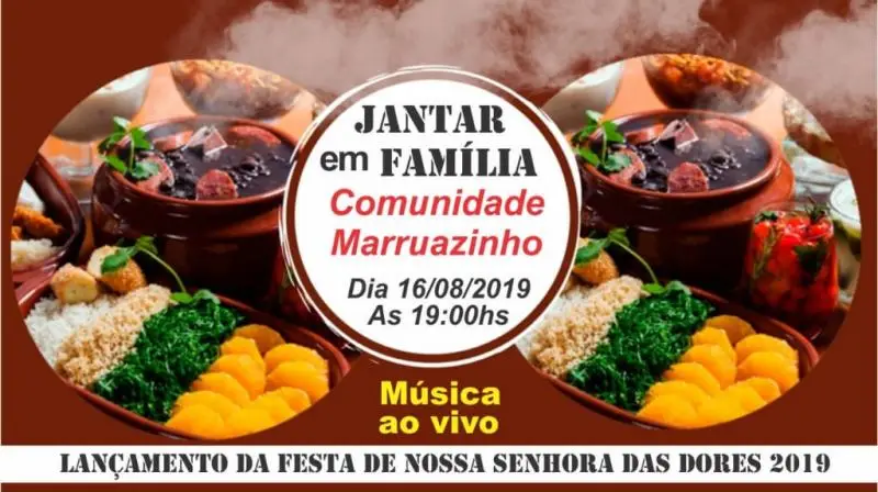 A comunidade Marruazinho, através do Conselho comunitário, juntamente com as famílias realizará um jantar beneficente em prol da festa de Nossa Senhora das Dores, a padroeira da comunidade. O evento acontecerá na próxima sexta-feira (16) às 19 horas. Ainda no mesmo dia será apresentado para as famílias e convidados a programação da Festa de Nossa Senhora das Dores.