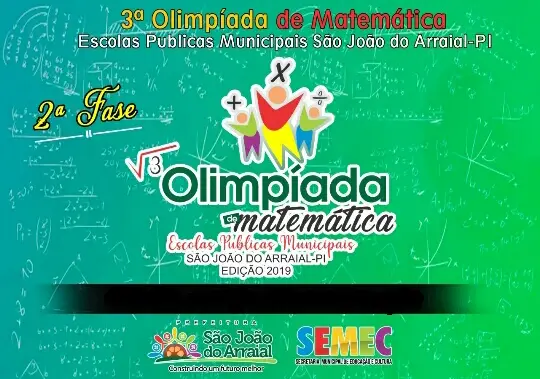 A Prefeitura Municipal de São João do Arraial, por meio da Secretaria Municipal de Educação e Cultura (SEMEC), divulgou o resultado final da 3ª Olimpíada de Matemática das Escolas Públicas Municipais (OMEPM). A Olimpíada foi realizada em duas etapas, sendo a primeira no dia 20 de setembro e a segunda no dia 14 de novembro. Cerca de 759 alunos realizaram as provas na primeira fase, sendo que duzentos e setenta e um se classificaram para a segunda fase, sendo 161 do nível 1 (6° e 7º ano) e 110 do nível 2 (8° e 9º ano).