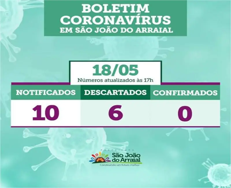 "O boletim de hoje traz mais dois casos suspeitos da covid-19 em São João do Arraial, chegando a 10 o número de pacientes notificados.