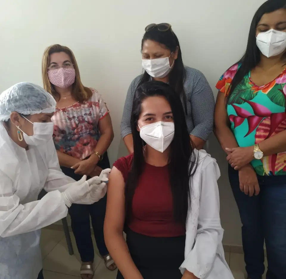 A primeira pessoa vacinada na cidade foi a técnica de Enfermagem Francisca Angelina (35). Além dela, dois profissionais do Centro Covid-19 também foram imunizados: o farmacêutico Mauro Sérgio (36) e a técnica em Enfermagem Shirley Lima (22).