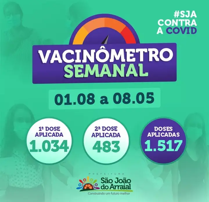 O município de São João do Arraial, alcançou a marca de 1.500 doses de vacinas aplicadas contra a Covid-19. O município de pouco mais de 7 mil habitantes está vacinando durante esta semana idosos de 60 a 64 anos.