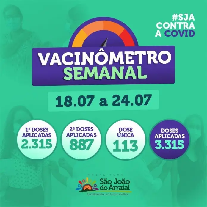 A Prefeitura de São João do Arraial, através da Secretaria Municipal de Saúde (SMS), divulgou os novos dados do vacinômetro contra a covid-19. Segundo o levantamento, o município possui 1.000 pessoas totalmente imunizadas contra o vírus, sendo 887 pessoas vacinadas com duas doses e 113 com dose única.