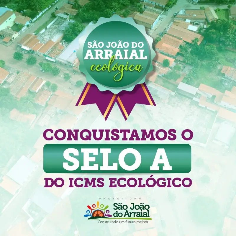 A Prefeitura de São João do Arraial conquistou o Selo Ambiental na categoria A, na edição 2021 do ICMS Ecológico. Esta é a primeira vez que o município obtém o reconhecimento da Secretaria Estadual do Meio Ambiente e Recursos Hídricos (Semar) pelo trabalho de proteção ao meio ambiente e recursos naturais.