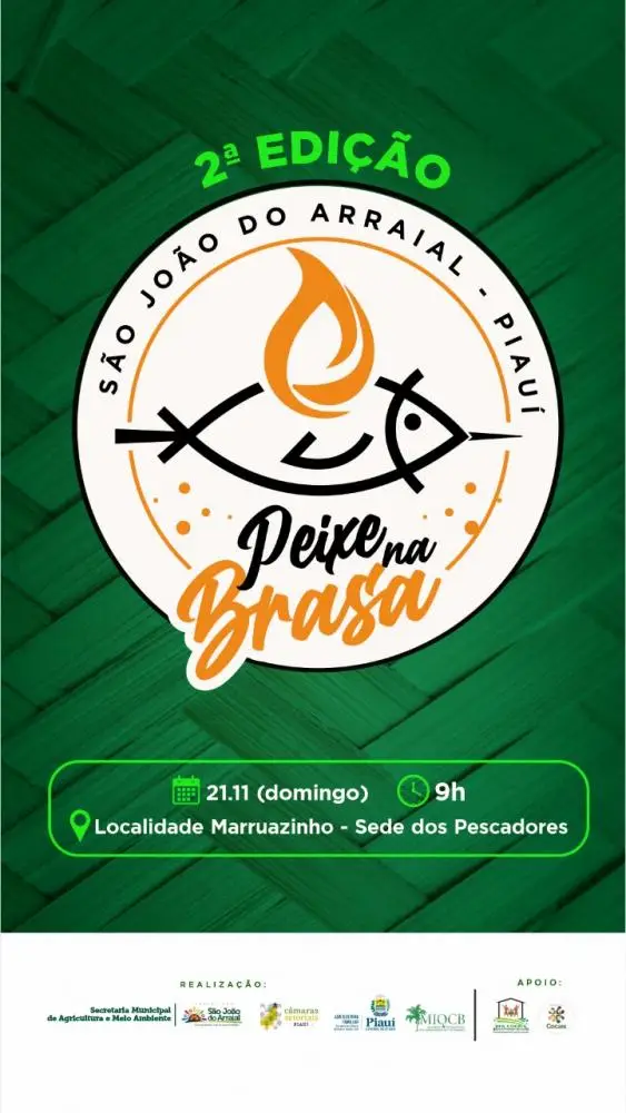 Vem aí, a 2° edição do Peixe na Brasa no município de São João do Arraial, um churrasco produzido com peixes produzidos por piscicultores da região.