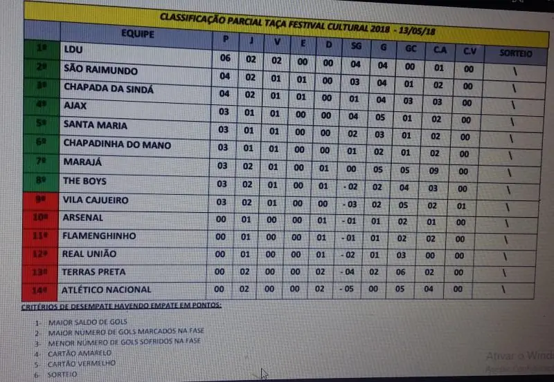Veja a classificação da Copa Taça Festival Cultural, faltando três jogos para o fim da primeira fase