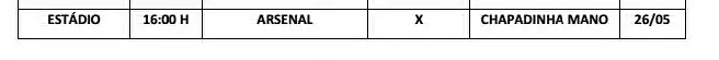 No próximo sábado (26), será realizado o último jogo da primeira fase da Copa Taça Festival Cultural, entre os times da Chapadinha do Mano e Arsenal, no Estádio Municipal de São João do Arraial. A equipe da Chapadinha do Mano precisa apenas de um empate, para se classificar, já o Arsenal precisa vencer para não ser eliminado, e o The Boys vai ficar na torcida, esperando o resultado, para saber se vai ficar com uma das duas vagas. Se o Arsenal vencer por um ou dois gols de diferença, se classificam Arsenal e Chapadinha do Mano, e o The Boys será eliminado, se o Arsenal vencer por quatro ou mais gols de diferença, se classificam Arsenal e The Boys, e a Chapadinha do Mano será eliminada, se Chapadinha do Mano vencer ou empatar, se classificam Chapadinha do Mano e The Boys, e o Arsenal será eliminado, e se a Chapadinha do Mano vencer por cinco ou mais gols de diferença, além de se classificar, garante o primeiro lugar na tabela, e deixa o Ajax em segundo.